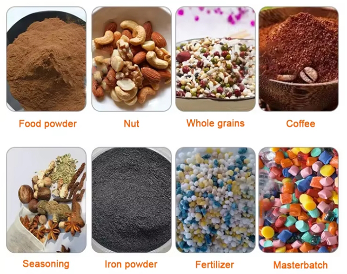 The grinding mill is widely used in chemical, food, and other industries, especially suitable for crushing spices (fennel, turmeric, chili, pepper, chickpea, cinnamon, etc.), tea leaf, moringa leaf, potato powder, coffee beans, salt, sugar, chemical raw materials, etc.