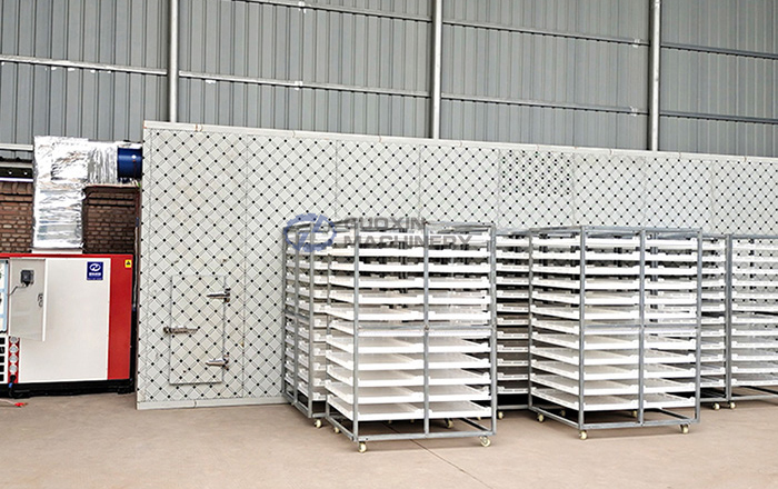The pasta dryer adopts hot air circulation + staged temperature and humidity control technology, adjusts the temperature, humidity and wind speed in different drying stages, simulates the natural air drying environment, and makes the internal moisture of the noodles evaporate evenly to prevent the surface from crusting or cracking. The entire drying process is controlled by PLC intelligently, and the optimal drying curve can be set according to different types of pasta to achieve efficient, stable and precise drying effects.