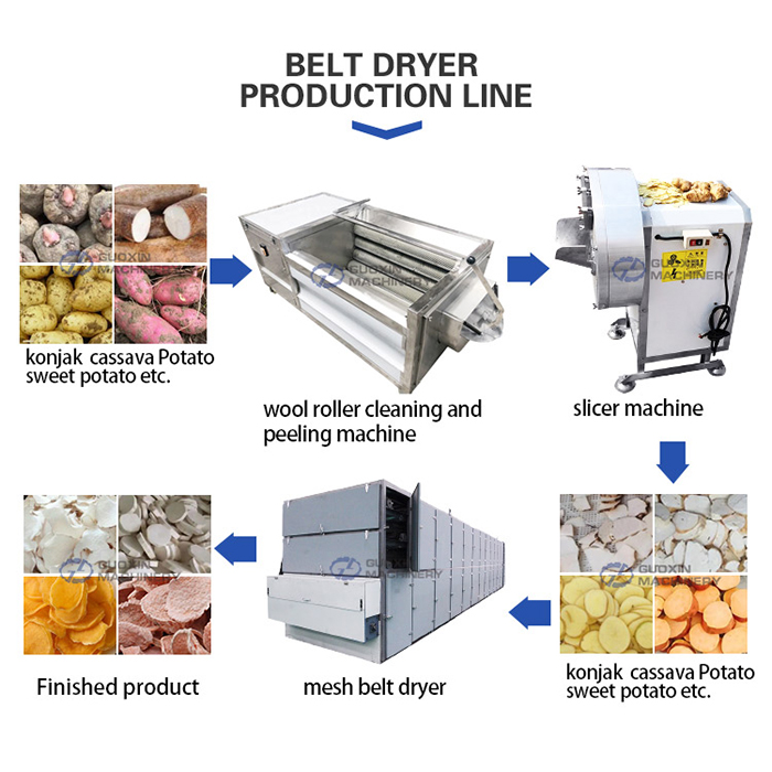 Introduction of the potato drying production line: A potato drying production line is an equipment system that processes fresh potatoes into dehydrated potato products using a heat pump dryer. By cont...